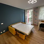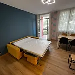 Apartment Cornicello With Pool By Glam设有小厨房和配阳台,沙发 和休息区的客房. 现场有1间洗澡间. 考虑到您的方便和舒适,浴室配备分开的洗手间 和淋浴.